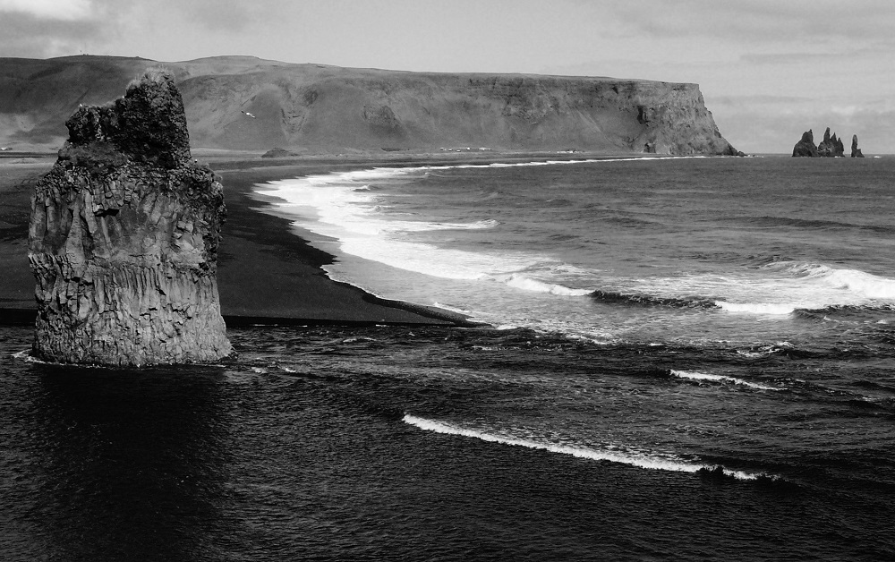 black and white Dyrhólaey Iceland photography