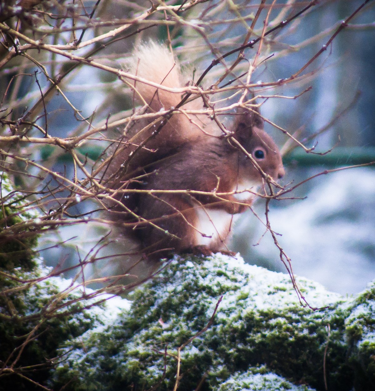 On the wintry day of Storm Darcy, it too felt the cold and lined up with all the birds and trying its luck with the peanut feeder. I’m amazed how fast a red squirrel moves. This was a rare moment of still, nevertheless I so far haven’t quite managed to be ready for the brief window of time to get it in focus before it moves again. Or to get close enough. However, cuteness overload isn’t missed regardless. It is a daily sign that makes the heart jump with joy, even on days where it feels covered in clouds.