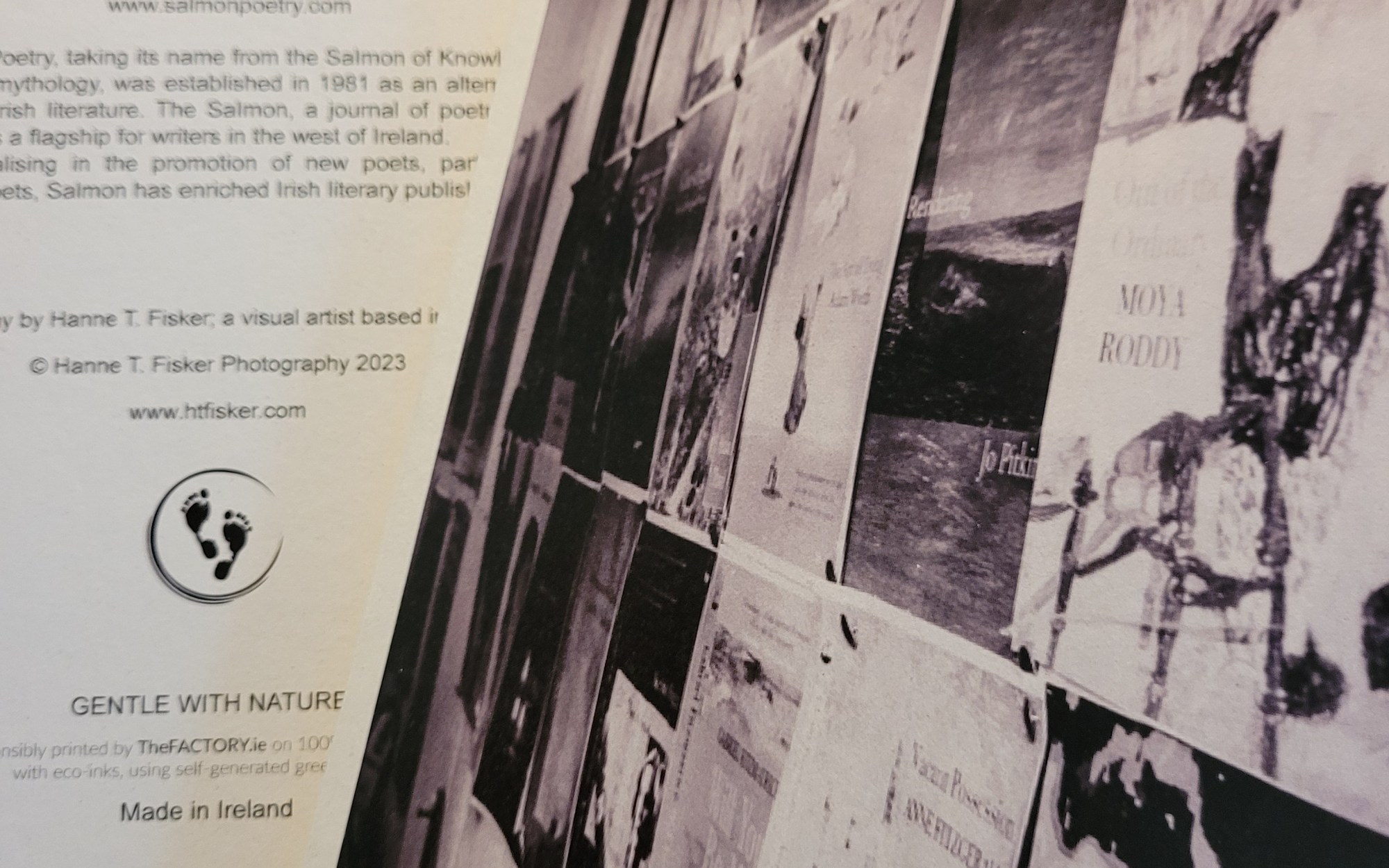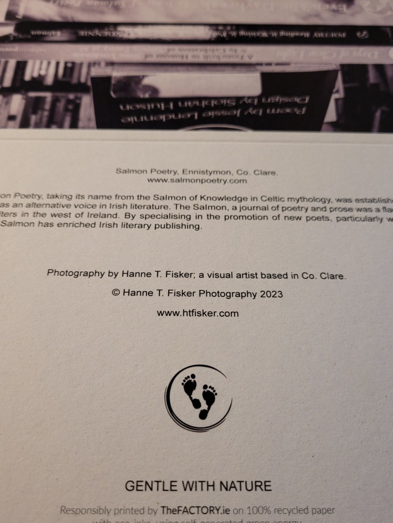The photographs can now be found on print exclusively in The Salmon Poetry bookshop. Size A5, printed with eco-inks on 350 gms 100% recycled paper.