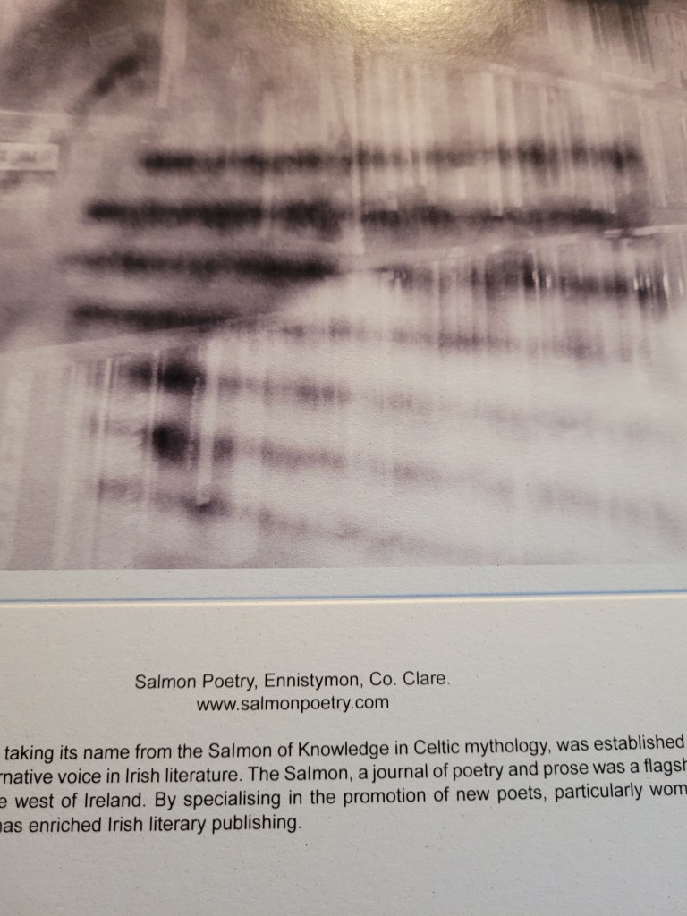 Little did I know, when I contacted Jessie Lendennie at Salmon Poetry that my idea would become a little historic memory, since they had to vacate the building that same year, 2023. Through GoFundMe they raised what was needed to buy an old pub on the Main Street, in Ennistymon for the Salmon Poetry Bookshop to move to. It was phenomenal. Such is the community in Co. Clare and far beyond. Treasuring books, independent bookshops and the arts. When people come together to help each other, anything is possible.
