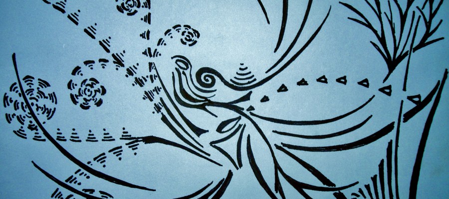 Not long ago I all of a sudden found myself with a black pen in my hand. It was moving to it’s own rhythm over the paper, as if it was listening to a beat from another world and lines started forming themselves into strange images, landscapes and beings I