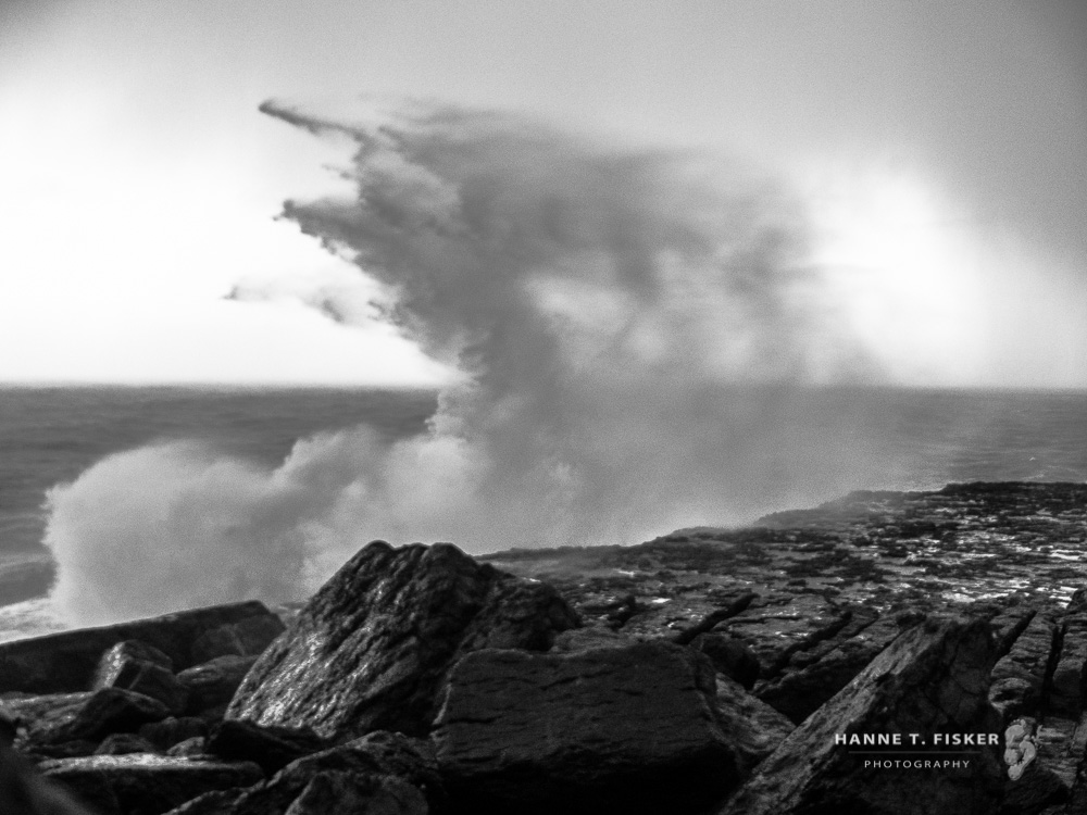 Not an easy task to keep the lens dry and get a clear shot in the whirling rain and sea spray from the wild waves crashing in, whilst the wind is battering around a body that’s trying to hold the camera still. I obviously didn’t succeed and yet these